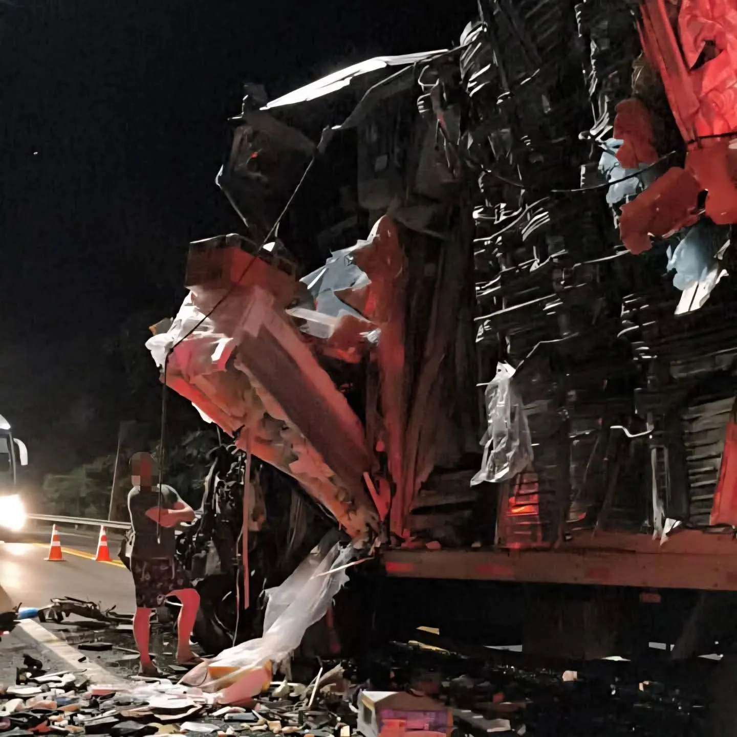 O trânsito chegou a ficar bloqueado, mas no momento está fluindo para os veículos pequenos por um desvio ao lado da rodovia e, para os caminhões, estão fazendo um sistema pare e siga por um acostamento.