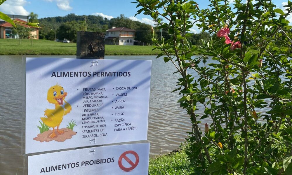 Presidente Lucena – O vice-prefeito e secretário da agricultura e meio Ambiente, Luiz Spaniol (Lui), colocou recentemente placas sobre os alimentos corretos que os visitantes devem dar para os patos do lago do parque Municipal Egon Gewehrt.