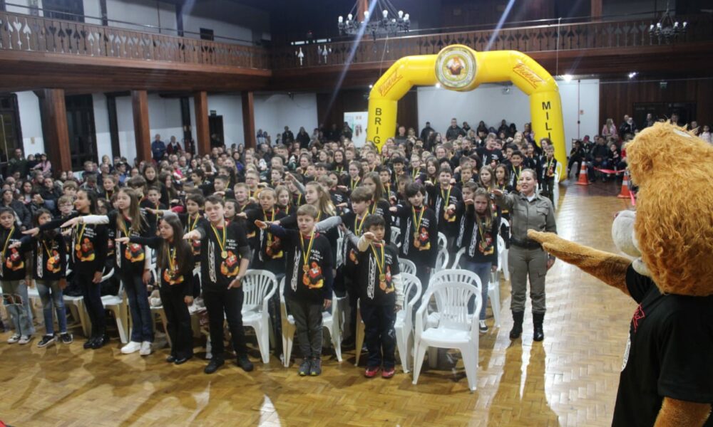 Nova Petrópolis – Cento e cinquenta e três alunos de cinco escolas de Nova Petrópolis disseram NÃO às drogas na Formatura do primeiro semestre do Proerd, programa realizado pela Brigada Militar no combate às drogas. Assim como ocorreu no ano passado, neste ano a Brigada Militar pretende alcançar todos os 5º anos, de todas as escolas de Nova Petrópolis, municipais, estaduais e particulares.