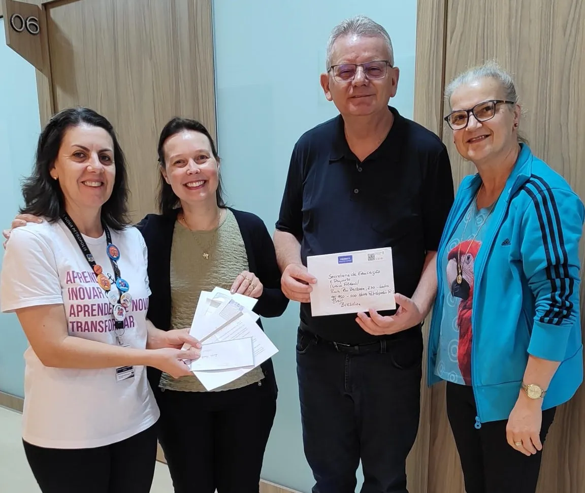 Nesta semana, as primeiras cartas vindas da Alemanha foram oficialmente recebidas pela Administração Municipal. Em ato simbólico, o prefeito Daniel Carlos Michaelsen, a secretária de Educação, Caroline Kehl Matter, e a coordenadora de Cultura, Greice Feldens, recepcionaram o material entregue pela professora Célia Heylmann, que atua como mediadora direta do projeto com a cidade irmã.