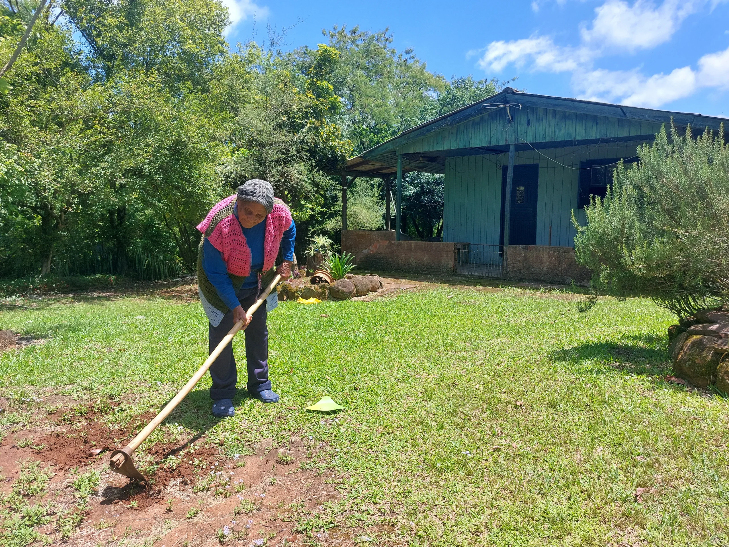 Aos 103 anos Silvina ainda vai para o pátio com sua enxada