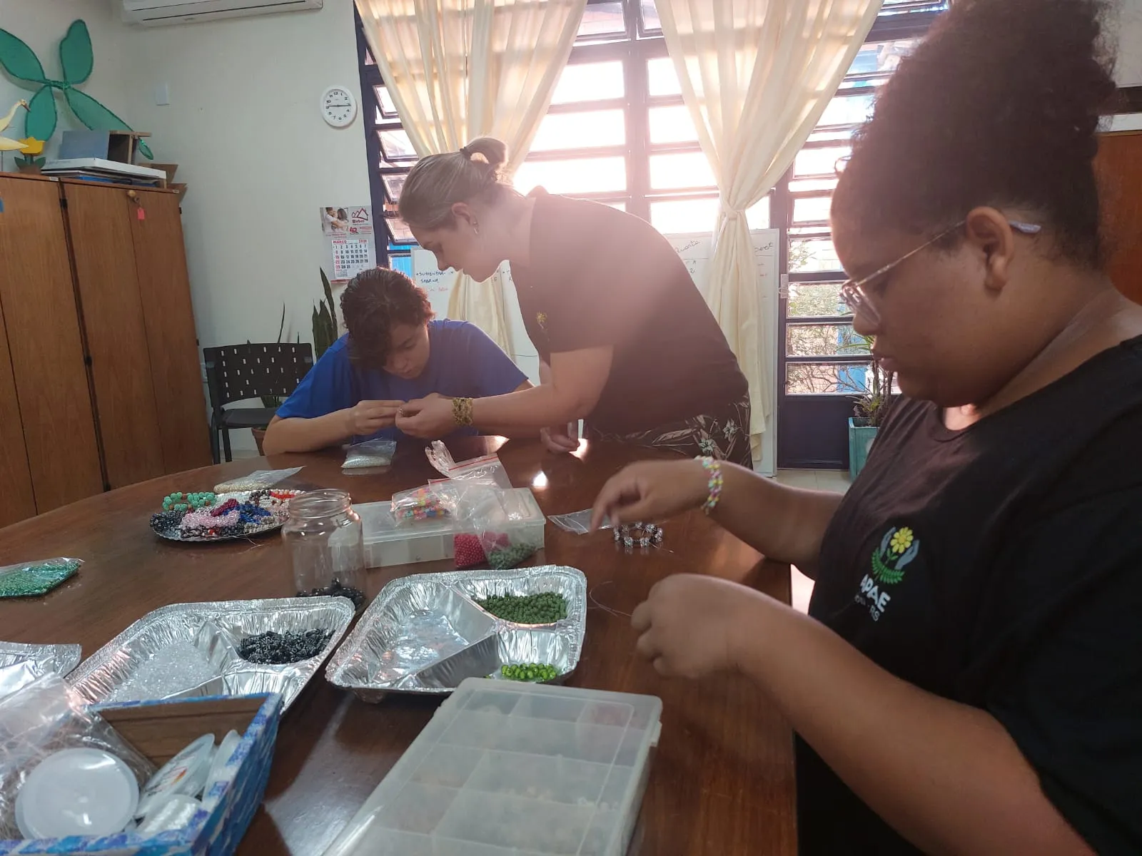 “Estou no projeto desde o início e gosto muito de fazer coisas com miçanga. A gente se ajuda e eu gosto bastante de participar”, afirmou Laura Fank, de 24 anos. Mariele Caurio, de 23 anos, iniciou no projeto este ano e também está aprendendo a fazer pulseiras.