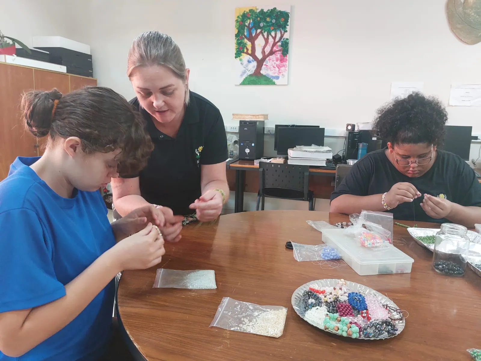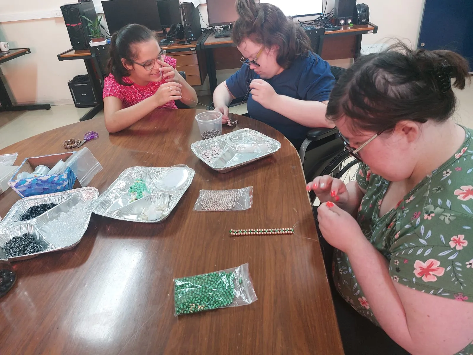 No momento, o grupo vem trabalhando na criação de pulseiras de miçangas, mas a intenção é expandir o projeto e trabalhar também outras modalidades de trabalhos manuais, como fuxico e macramê. A ideia do grupo surgiu para aproveitar as miçangas que eram doadas para a APAE e as primeiras pulseiras eram feitas seguindo os desenhos dos modelos copiados da internet pelo professor Leonardo Schumanski. Aos poucos, os participantes foram se entusiasmando com a ideia e mesmo terminando com as miçangas doadas, o projeto seguiu. “Hoje, usamos o valor vendido com as pulseiras na aquisição de mais material e isso também faz parte do projeto. Ir até as lojas, escolher e comprar o material que será usado”, destacou Janete. Nesses momentos, as participantes também podem levar dinheiro próprio e comprar material para seguir trabalhando em casa, o que muitas vem fazendo.