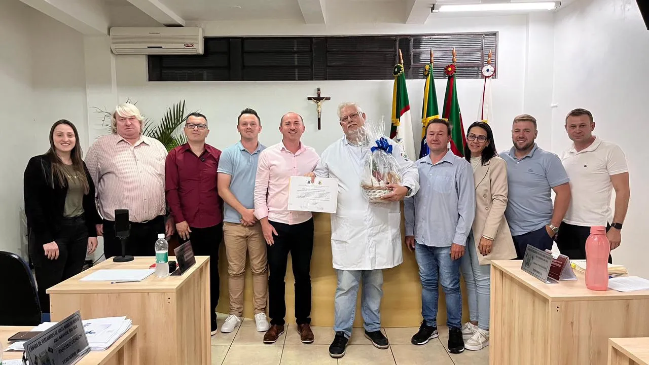 Durante a sessão, o Dr. Fábio Schilling Roehe também recebeu uma Moção de Reconhecimento pelos 15 anos dedicados ao serviço público e pelo trabalho prestado na coordenação da saúde do homem no município. A homenagem destacou sua contribuição contínua para a promoção do cuidado preventivo e para o fortalecimento das políticas de saúde voltadas ao público masculino.