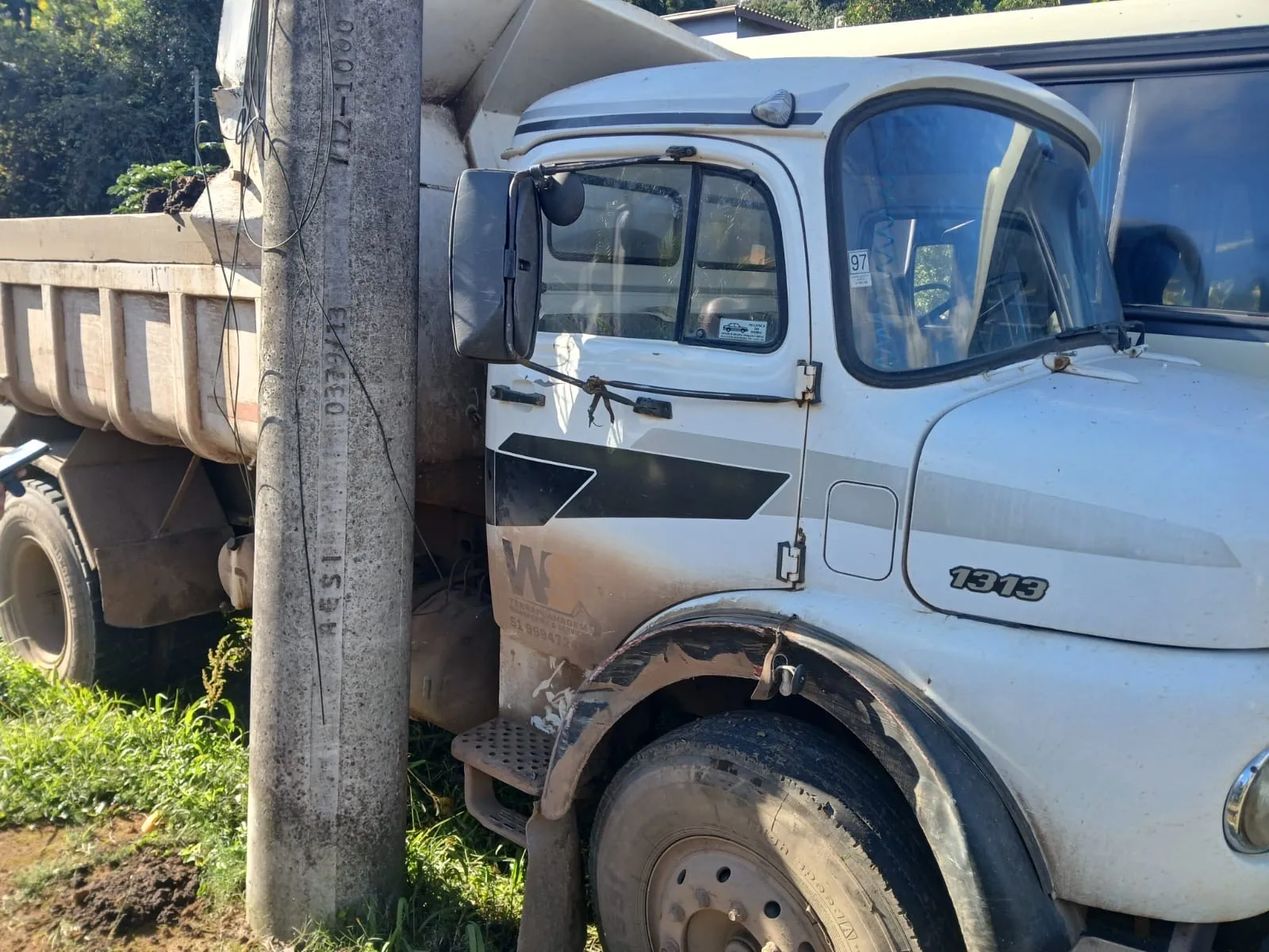Caminhão sem freio atinge poste na descida para Estância Velha