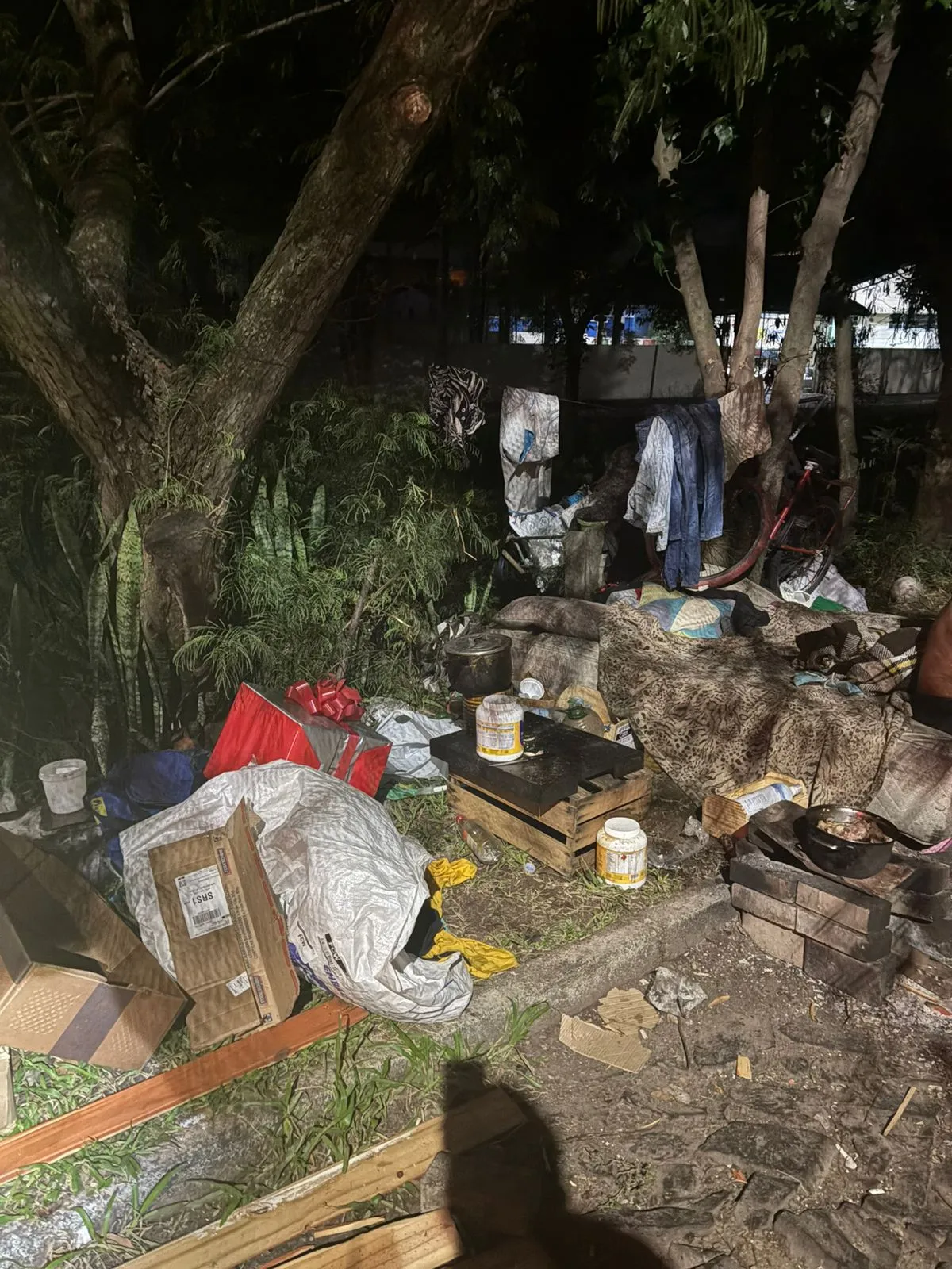 Ao chegar no local onde o casal está permanecendo, as margens do arroio da rua Pedro Torres, além de estarem em plena briga um com o outro, o cenário encontrado foi caótico. Grande quantidade de lixo, resíduos sólidos e objetos descartados diretamente às margens e no leito do arroio, causando degradação ambiental, poluição visual e risco de contaminação do curso d’água. Conforme apurado no local e confirmado pelos próprios abordados, os resíduos foram descartados de forma frequente diretamente no arroio, caracterizando dano ao meio ambiente, o que configura crime ambiental.