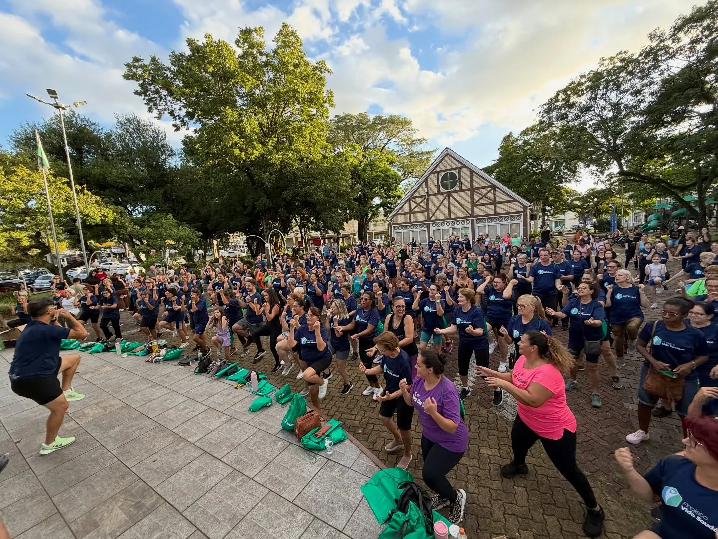 Estância Velha- Na tarde deste sábado, 28, cerca de 200 pessoas participaram da aula aberta do Projeto Vida Saudável, realizada na Praça 1º de Maio. O encontro reuniu alunos, familiares e integrantes da comunidade em um momento especial de integração, bem-estar e incentivo à prática de atividades físicas.