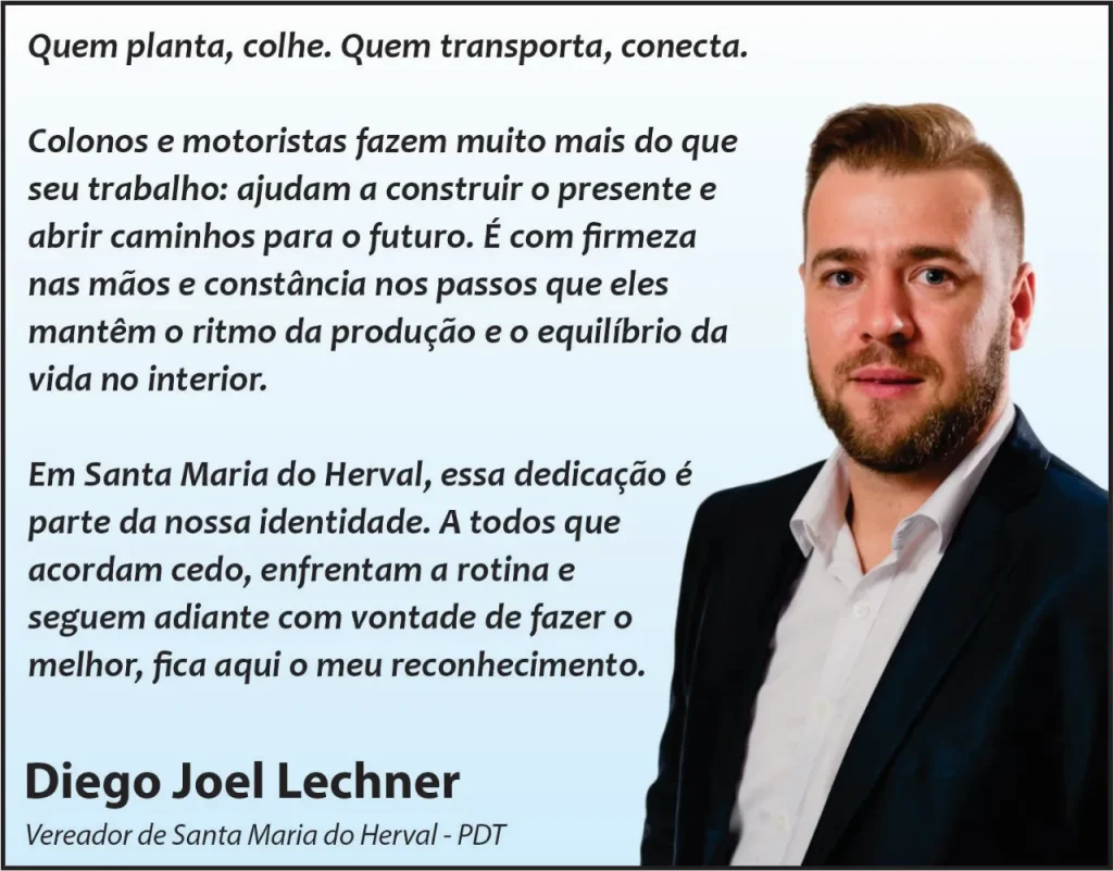 Nos fins de semana, o som que ecoa da propriedade não é apenas o dos implementos agrícolas. É música. Os irmãos também são integrantes de bandas típicas. Andrei toca gaita. Anderson, bateria. Os dois participam da banda “Os Guris” de Santa Maria do Herval, e, Andrei, da Banda Periquito de São José do Hortêncio. Neste Dia do Colono e Motorista, inclusive, vão embalar uma festa para homenagear aqueles que, como eles, transformam o campo em alimento e a estrada em conexão.