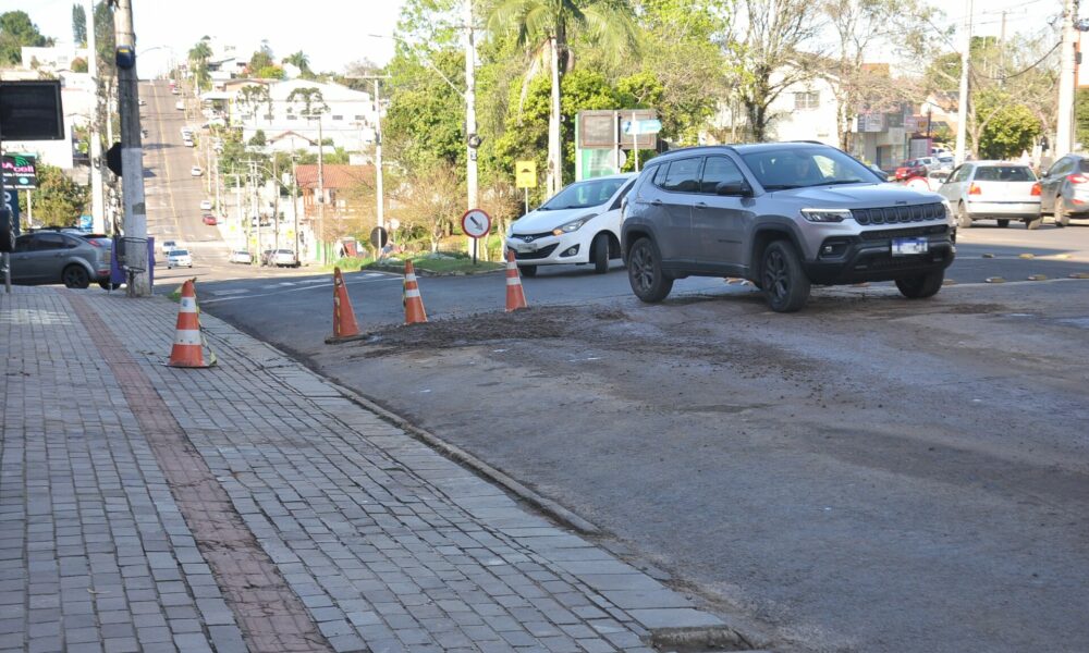 Ivoti – Um conserto realizado pela Água de Ivoti está causando desvios no trânsito, na Av. Presidente Lucena, no Centro. Cones foram colocados para sinalizar uma espécie de calombo formado pelo material utilizado para tapar o buraco. Os carros necessitam passar por cima da sinalização da rótula, para poder seguir pela via.