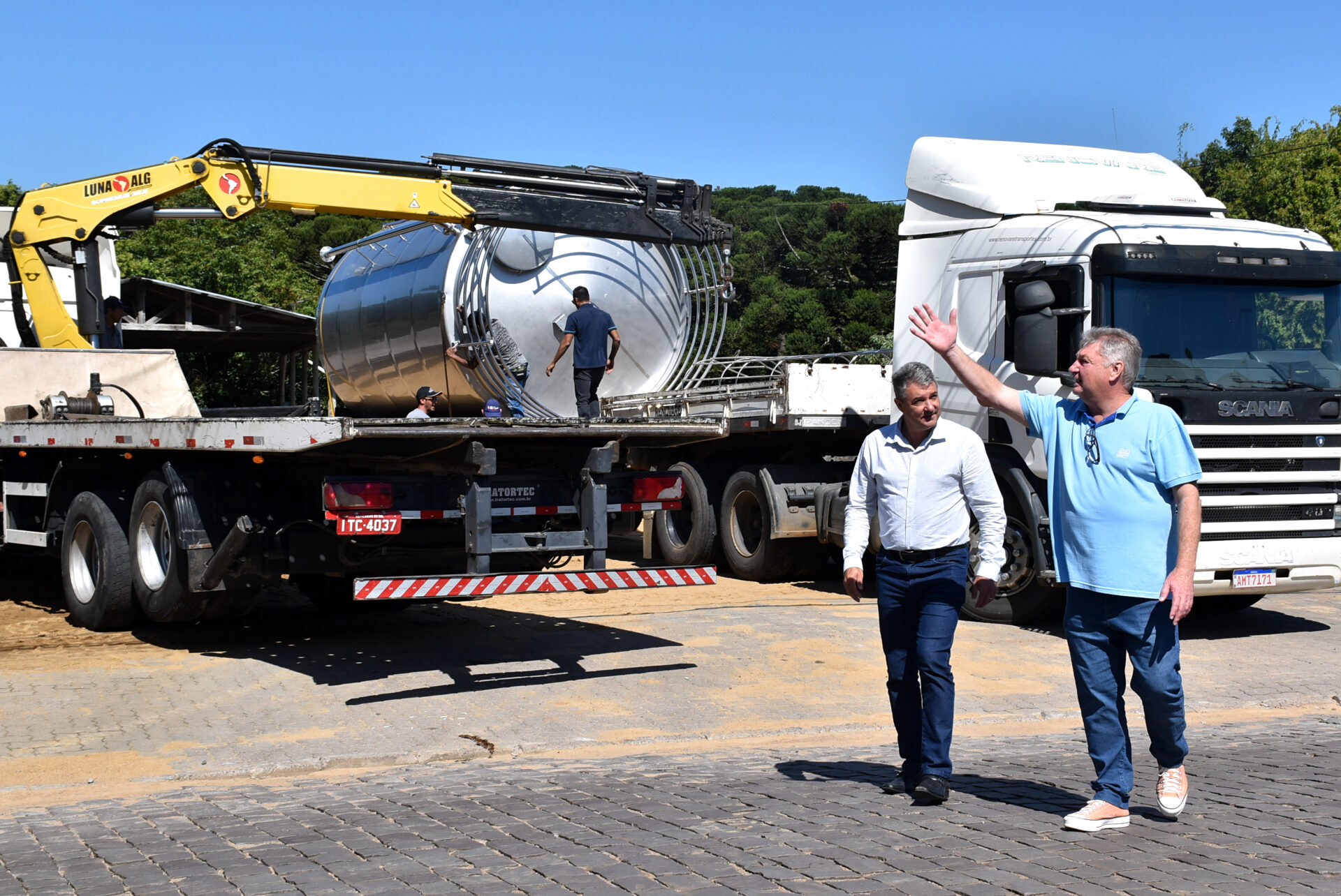 Durante a manhã de terça, o prefeito Darlei Wolf e o gestor da unidade local da Corsan, Sadi Zimmermann, acompanharam a instalação do reservatório na Av. Germânia. Neste local, o novo reservatório de 50 mil litros se soma ao tanque já existente, que tem capacidade de 150 mil litros.