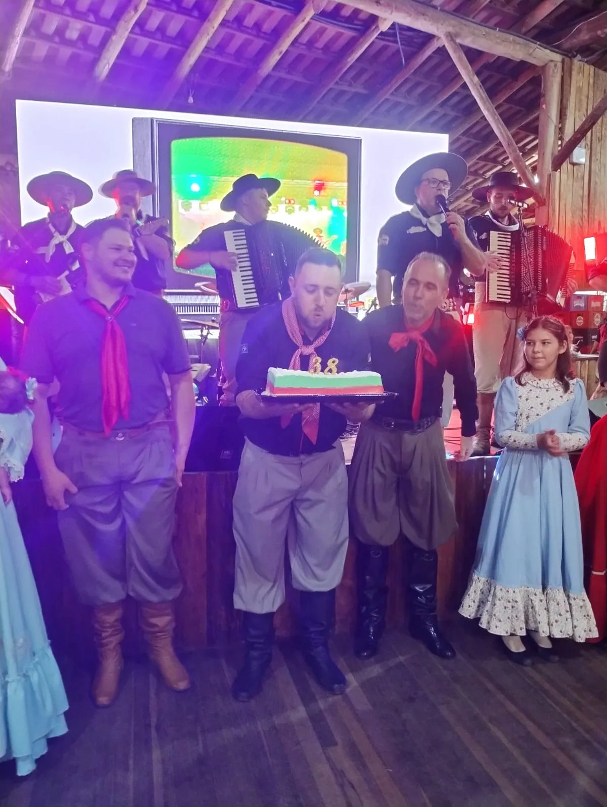 O evento contou com apresentação das invernadas e almoço festivo. No cardápio, churrasco, diversos acompanhamentos e salada. Foram cinco horas de festa e o cartão do almoço era R$ 60, mas a entrada para o baile, na parte da tarde, estava liberada a partir das 14 horas. Na hora do parabéns para a entidade, o patrão Cleber Geraldo Parma foi quem representou e teve a honra de apagar as velas do bolo.