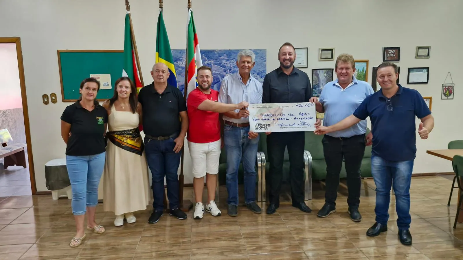 O deputado federal Afonso Motta (PDT) esteve em Santa Maria do Herval para a entrega oficial de R$ 400 mil destinados ao capeamento asfáltico no bairro Amizade.
