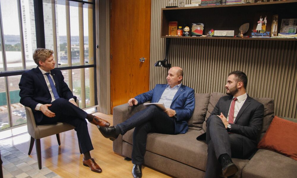 Brasília – Em seu gabinete em Brasília, o deputado federal Marcel van Hattem (NOVO/RS) recebeu o ex-colega da Assembleia Legislativa gaúcha, deputado estadual Elton Weber (PSB). Na visita, Weber aproveitou para conversar sobre as necessidades da região de Nova Petrópolis e pedir apoio de Marcel em emendas parlamentares. A reunião contou com a participação de Giuseppe Riesgo, ex-deputado estadual e novo chefe de gabinete de Marcel.