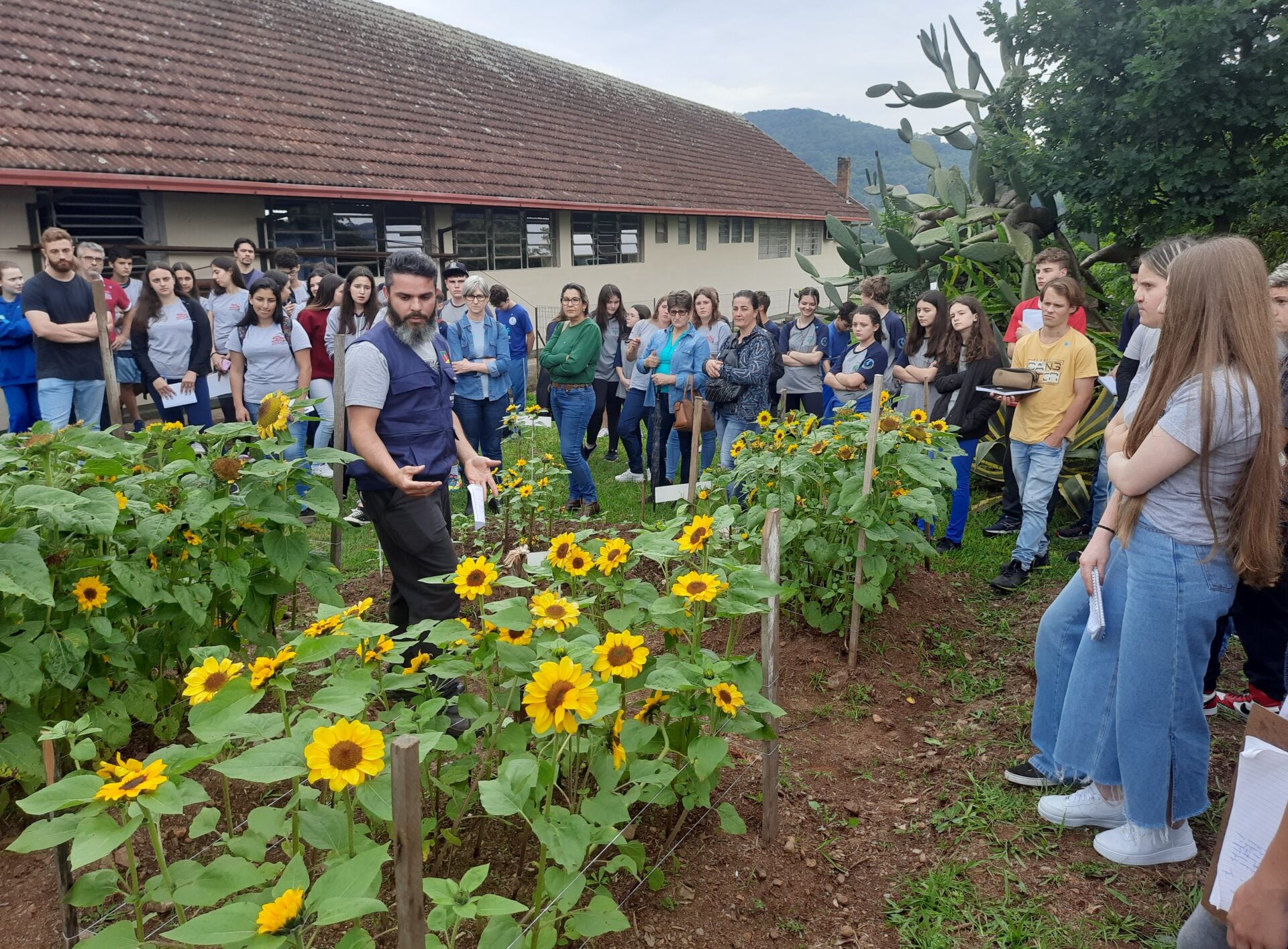 O Dia de Campo apresentou quatro estações técnicas abordando o manejo, desde o plantio até a colheita, das espécies do projeto: girassol, gladíolo, statice e ornithogalum, cultivadas na área experimental do Cetanp. “Mostrando então que essas culturas são aptas à região. A maioria dos plantios foi durante o inverno, nos meses de julho e agosto, quando ainda é bastante frio, e mesmo assim a gente está com flores lindas, florescidas, mesmo com uma estação bastante chuvosa. A ideia do projeto é trabalhar com essas flores mais rústicas, que o produtor consegue produzir praticamente o ano todo, agregando uma alternativa de renda na propriedade para os agricultores familiares e uma alternativa pedagógica para as escolas”, destacou a professora Lilian. Outra estação técnica que despertou a atenção do público foi a de arranjos florais, demonstrando a utilização dessas flores em buquês, como forma de agregar valor à produção. Pela manhã, os grupos realizaram ainda uma visita à área de produção de flores e Garten Center da Floricultura Úrsula.