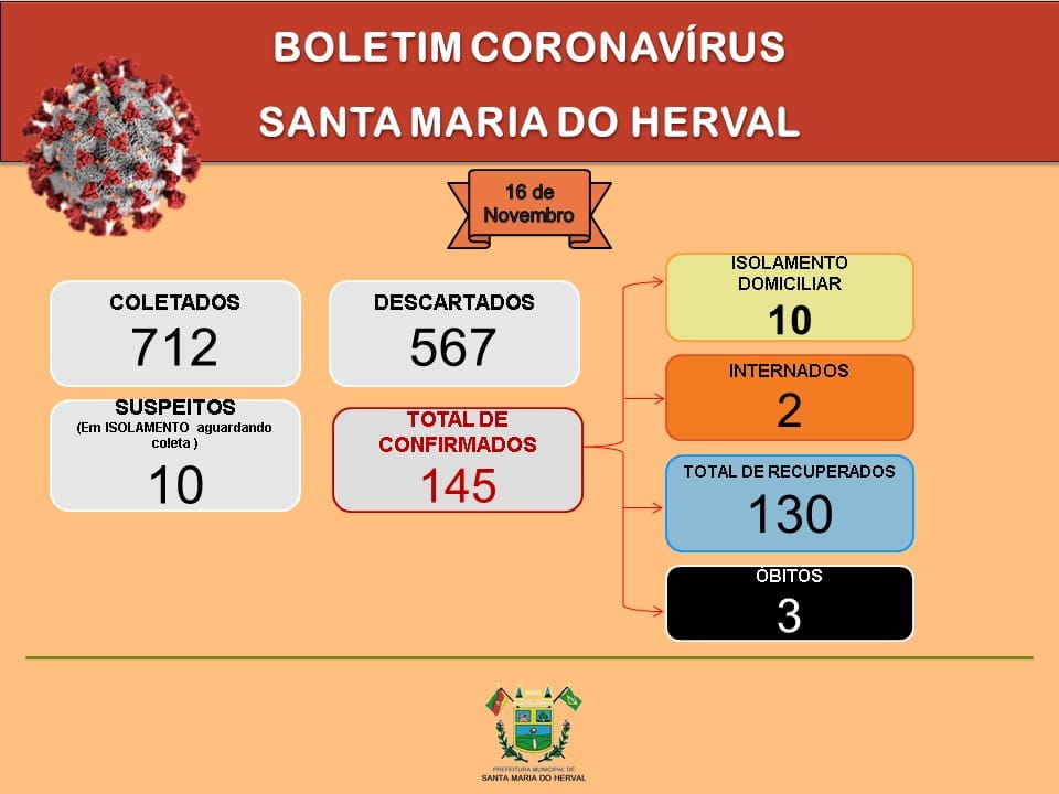 Três óbitos de moradores infectados com o vírus foram registrados. 130 pessoas já estão recuperadas.