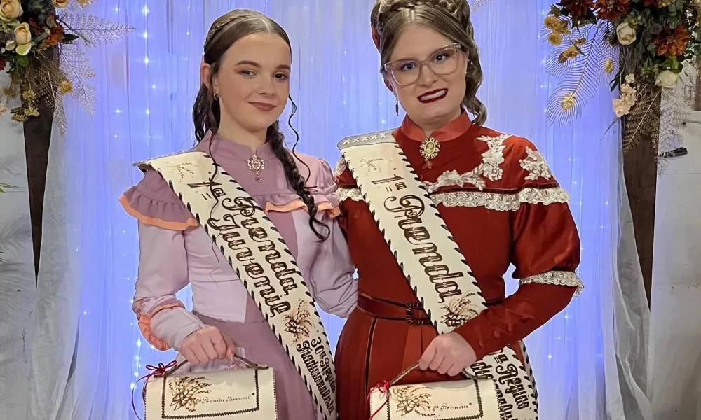A força e o compromisso com a cultura gaúcha têm nome e rosto em Santa Maria do Herval. Na noite de 28 de junho, durante o fandango de resultados da 55ª Ciranda Cultural de Prendas da 30ª Região Tradicionalista, realizado no CTG Serigote em Estância Velha, duas jovens do CTG Amigos da Tradição brilharam: Anna Paula Arnold, 20 anos, foi eleita 1ª Prenda Adulta da região, e Laura Haubert, 16 anos, conquistou o título de 1ª Prenda Juvenil.