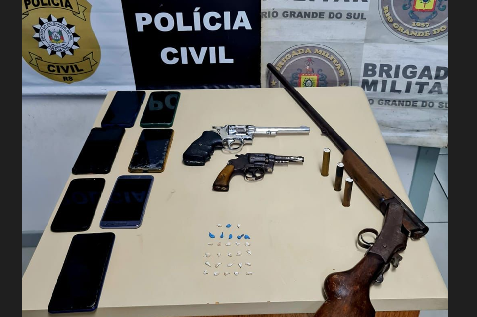Imbé – Uma ação conjunta da Brigada Militar e da Polícia Civil resultou em três prisões, e na apreensão de armas, entorpecentes, celulares e munições, no balneário de Albatroz, Imbé.