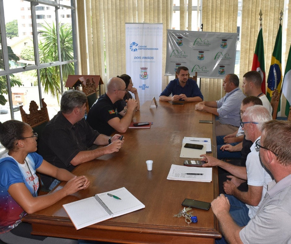 Participaram também da reunião, os secretários municipais João Jordan da Silva (Secretaria de Planejamento e Sustentabilidade), Carlos Arnold (Infraestrutura e Serviços Públicos), o chefe do Departamento de Meio Ambiente, Álan Kuhn, a fiscal ambiental, Diovana Konrad da Silva, o chefe do Departamento de Controle Urbanístico, Cleber Leandro Schneider, o chefe do Departamento de Material e Patrimônio, Afonso Carlos Bastian, e a topógrafa, Juliane Rosa Goulart.