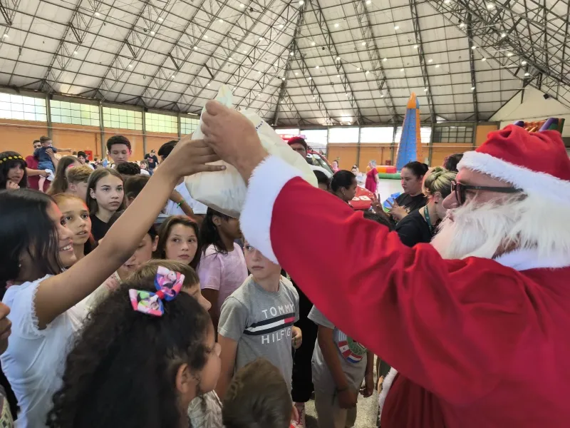 No sábado, 20 de dezembro, a Prefeitura de Nova Petrópolis realizou o Encontro de Famílias e a comemoração de fim de ano do Centro de Referência de Assistência Social (CRAS); do Serviço de Convivência e Fortalecimento de Vínculos (SCFV), do Espaço Multiprofissional de Atenção à Infância e Adolescência (EMAIA); e do Programa Primeira Infância Melhor (PIM). O momento, que aconteceu no Centro de Eventos, reuniu cerca de 250 pessoas, entre autoridades Municipais, servidores públicos, crianças, adolescentes, famílias e comunidade, celebrando as ações desenvolvidas ao longo do ano. O evento também contou com a presença do Papai Noel que distribuiu os presentes das cartinhas adotadas pela comunidade, escritas pelas crianças atendidas pela Assistência Social do Município, além de café da manhã, almoço, lanches, doces, brinquedos infláveis, cama elástica e música, que divertiram as famílias presentes na festa.