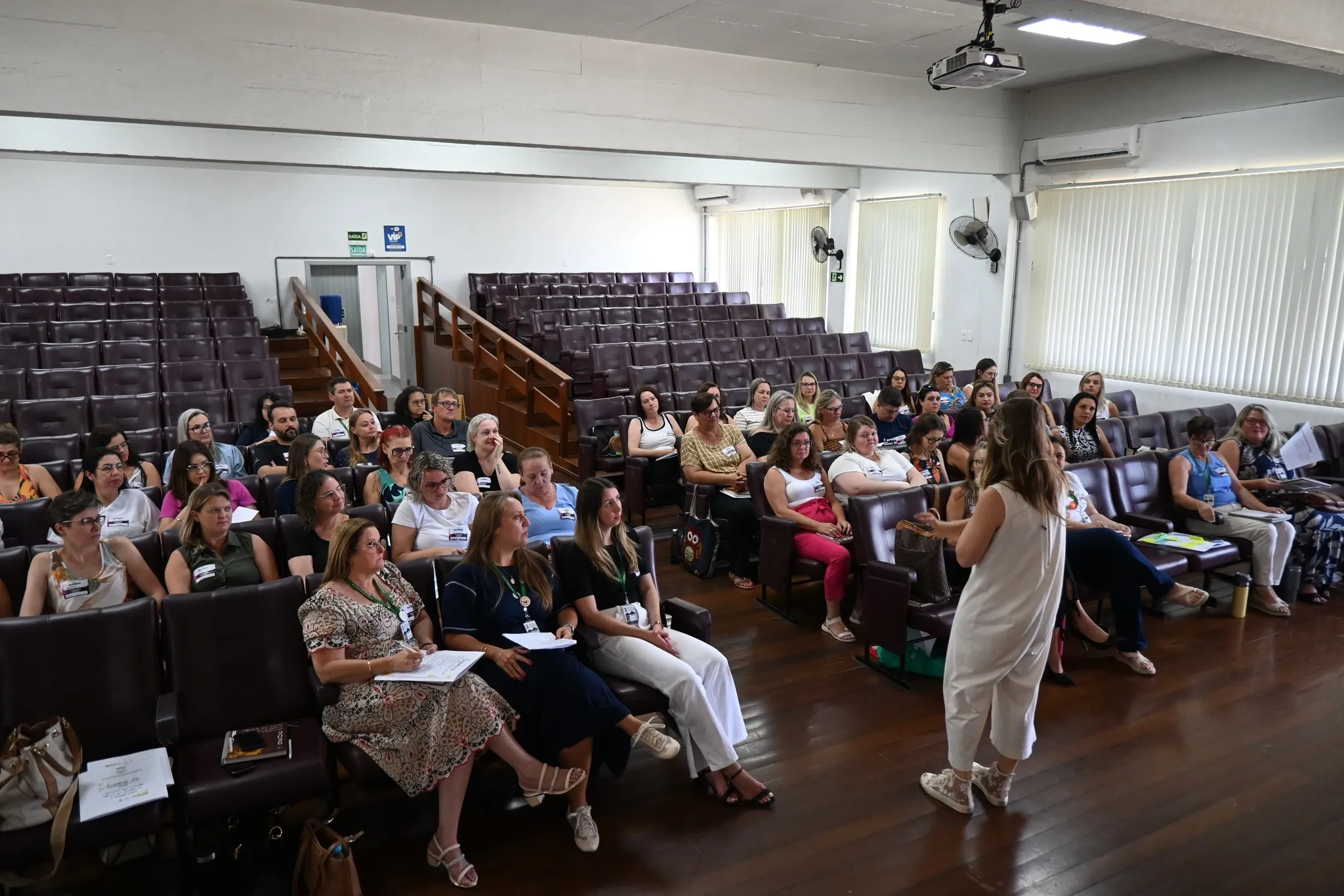 Na segunda-feira, diretores, vice-diretores e pedagogos participaram do primeiro encontro da Jornada de gestão humanizada, uma parceria entre a Secretaria de Educação e a Perestroika. A palestra foi ministrada por Helena Kich, facilitadora de aprendizagem da Perestroika, e marcou o início de uma série de encontros que acontecerão ao longo do ano letivo de 2026. Também houve orientações da Secretaria de Educação, do Núcleo de Apoio às Escolas (NAE), do Setor do Patrimônio e do Conselho Municipal de Educação.