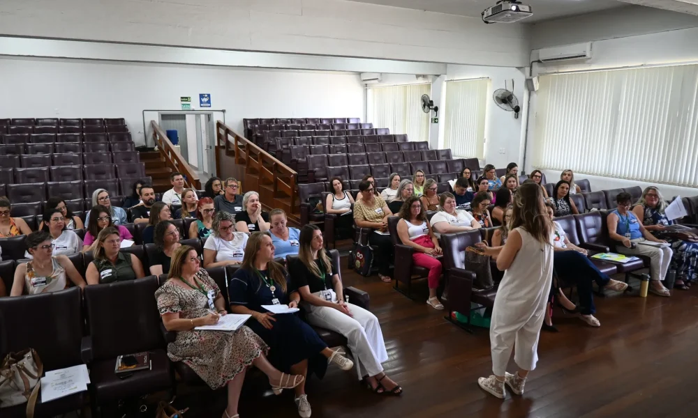 Na segunda-feira, diretores, vice-diretores e pedagogos participaram do primeiro encontro da Jornada de gestão humanizada, uma parceria entre a Secretaria de Educação e a Perestroika. A palestra foi ministrada por Helena Kich, facilitadora de aprendizagem da Perestroika, e marcou o início de uma série de encontros que acontecerão ao longo do ano letivo de 2026. Também houve orientações da Secretaria de Educação, do Núcleo de Apoio às Escolas (NAE), do Setor do Patrimônio e do Conselho Municipal de Educação.