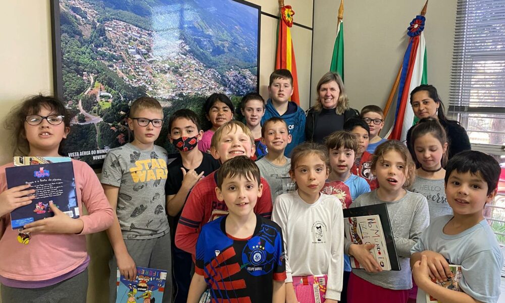 Morro Reuter – As turmas da escola municipal Rui Barbosa visitaram a prefeitura na quinta-feira, 1. Os estudantes foram recebidos pela prefeita Carla Chamorro no gabinete e percorreram as secretarias para conhecerem o funcionamento de cada pasta. Acompanharam as professoras Zelinda Albrecht e Eliane Janete Loebens.