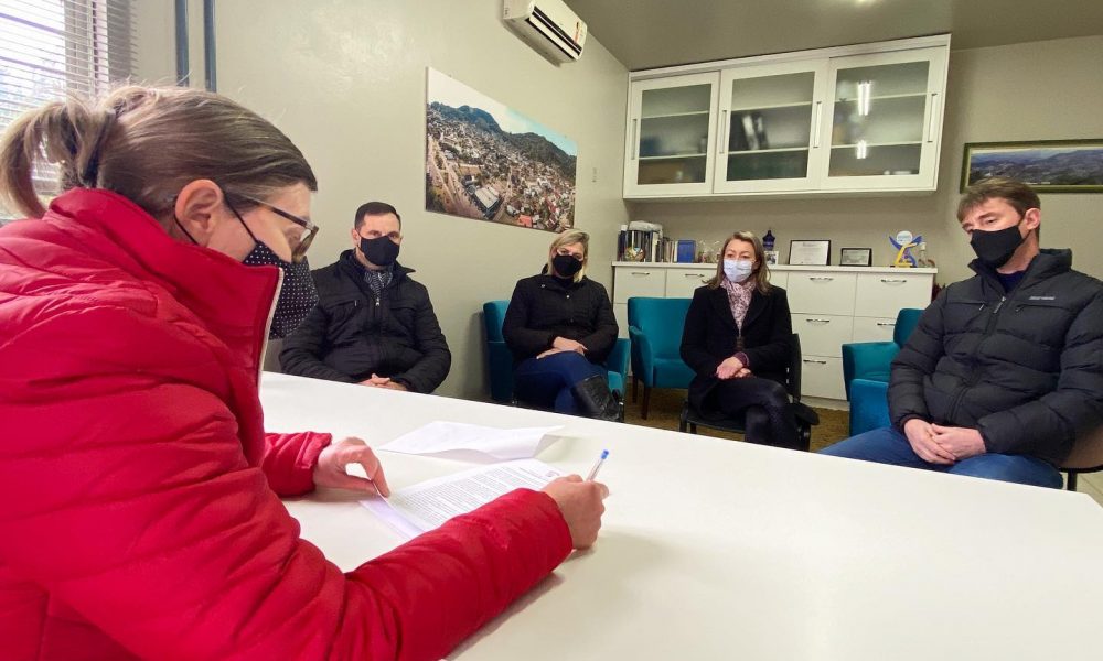 A assinatura do contrato foi feita pela prefeita Carla Chamorro e contou com a presença do vice-prefeito, Aírton Bohn; da secretária municipal de Educação e Cultura, Juliana Zimmer; da diretora da Tiradentes, Márcia Ramminger Sparremberger; e do coordenador pedagógico da escola, Eduardo Davi Holler.