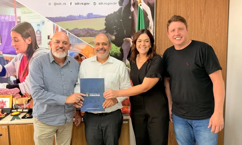 Estância Velha- O Município recebeu a confirmação de um repasse de R$ 75 mil do Governo do Estado para o fortalecimento da agricultura familiar no município. O recurso foi confirmado durante reunião que contou com a presença da chefe de gabinete da Secretaria Estadual de Meio Ambiente (SEMA), Luana Winter, do titular da Secretaria de Desenvolvimento Rural do Estado (SDR), Gustavo Paim, e do vice-prefeito Airton Haag, no Centro Administrativo Fernando Ferrari, em Porto Alegre.