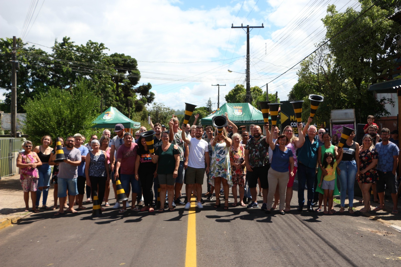 Estância Velha – Na manhã deste sábado, 4, foi oficialmente entregue à comunidade mais uma obra inserida no maior pacote de asfalto da região. O bairro Campo Grande foi o contemplado da vez com a rua Idelfonso de Londres (rua dos Beija Flores). O recapeamento asfáltico foi de 720 metros, com um investimento aproximado de R$ 590 mil. A obra era uma reivindicação antiga da comunidade local.