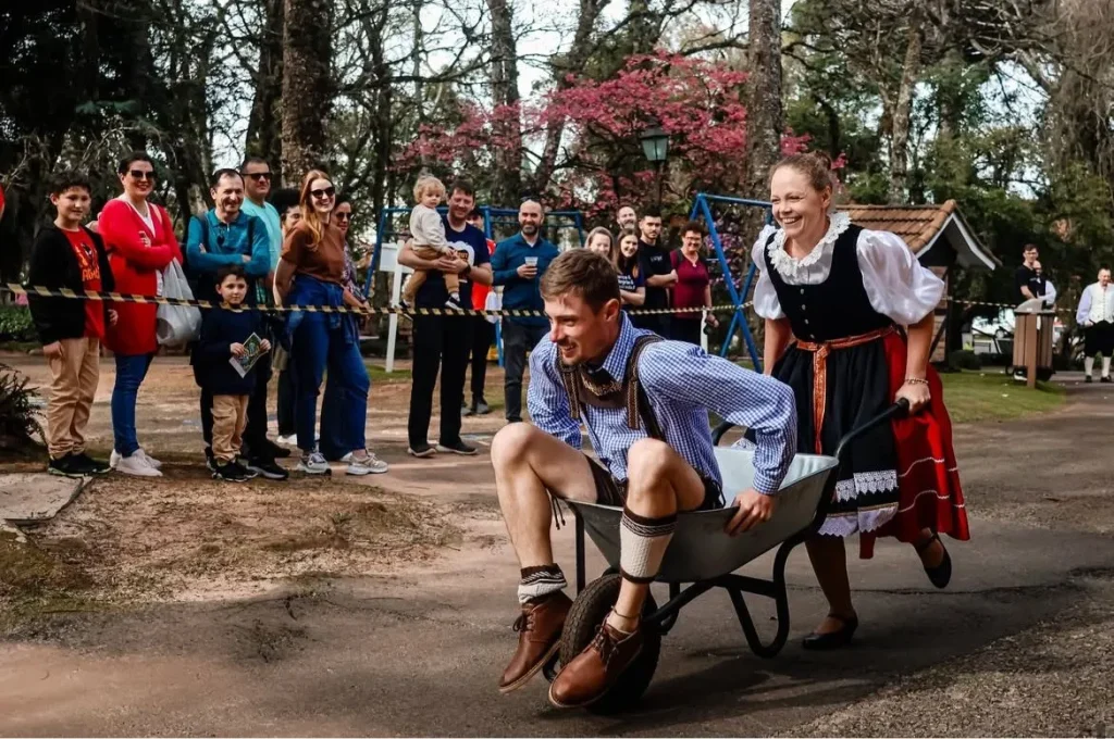 No sábado, os tradicionais Jogos Germânicos tomaram conta do Parque Aldeia do Imigrante e transformaram a tarde em uma celebração alegre da herança alemã. As provas, como “Pregar o Prego”, “Debulhar o Milho” e o divertido “Blinder Fritz”, envolveram integrantes da Associação de Danças Folclóricas Alemãs e do CTG Pousada da Serra. O público acompanhou cada desafio com entusiasmo — entre risos, torcida e muitas fotos.