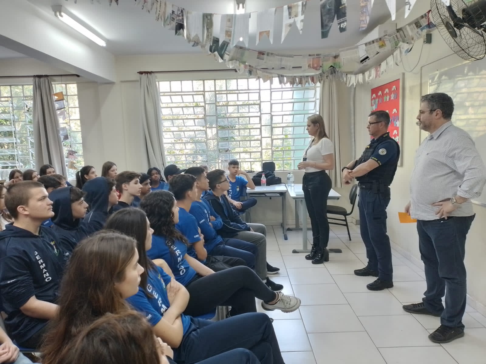 Estância Velha – A parceria da ROPE – Ronda Preventiva Escolar, da Guarda Municipal, com a Polícia Civil está oportunizando aos jovens estudantes estancienses uma palestra sobre o comportamento e as suas consequências legais.