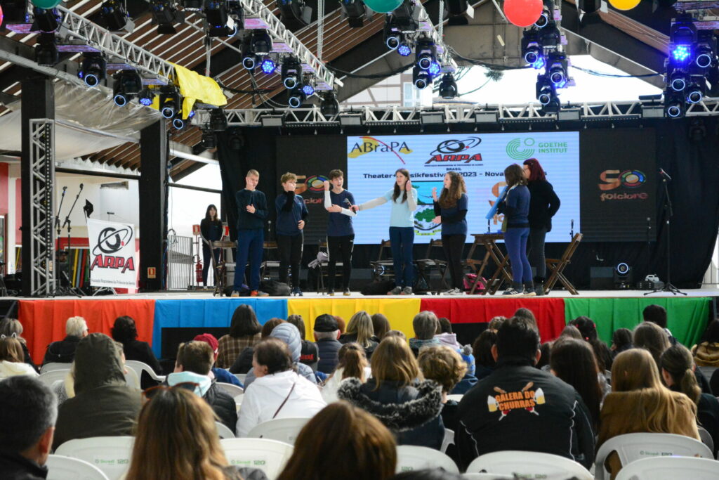 Nova Petrópolis – Abrindo as atividades do Festival Internacional de Folclore na Rua Coberta, as crianças deram um show no Festival de Teatro em Língua Alemã Musik und Theaterfestival – Arpa. Foram diversas apresentações que marcaram o início do festival para as crianças. O evento integra a programação oficial e é promovido pela Arpa (Associação dos Professores de Língua Alemã).