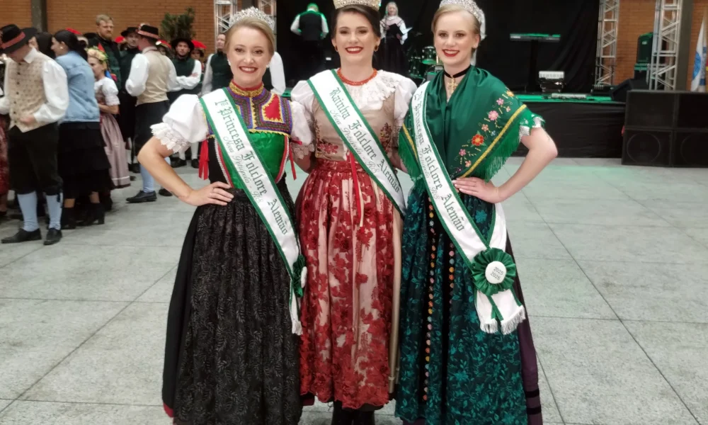 Nova Petrópolis – Francieli Tais Herrmann é a rainha e Cristina Kuhn e Eduarda Baumgarten são as princesas do Folclore Alemão de Nova Petrópolis no ano de 2025. A escolha ocorreu na noite deste sábado (05/04).