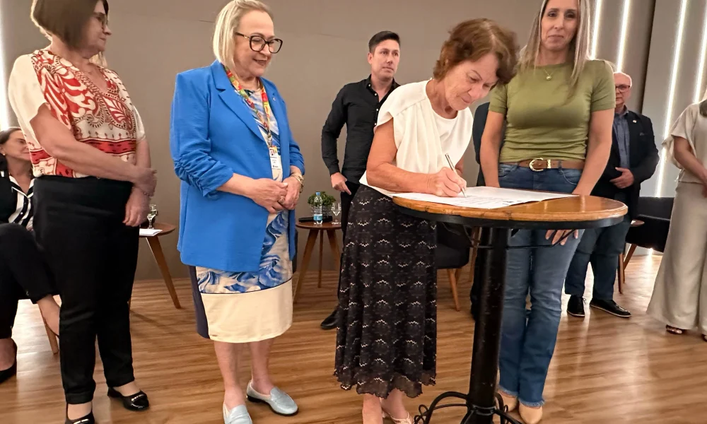 A secretária Municipal de Saúde e Assistência Social, Crislei Gerevini; o secretário adjunto da pasta, José Henrique Silveira, e a presidente da Ordem Auxiliadora das Senhoras Evangélicas (OASE), entidade mantenedora do Hospital Nova Petrópolis, Erica Zang Michaelsen participaram do ato.