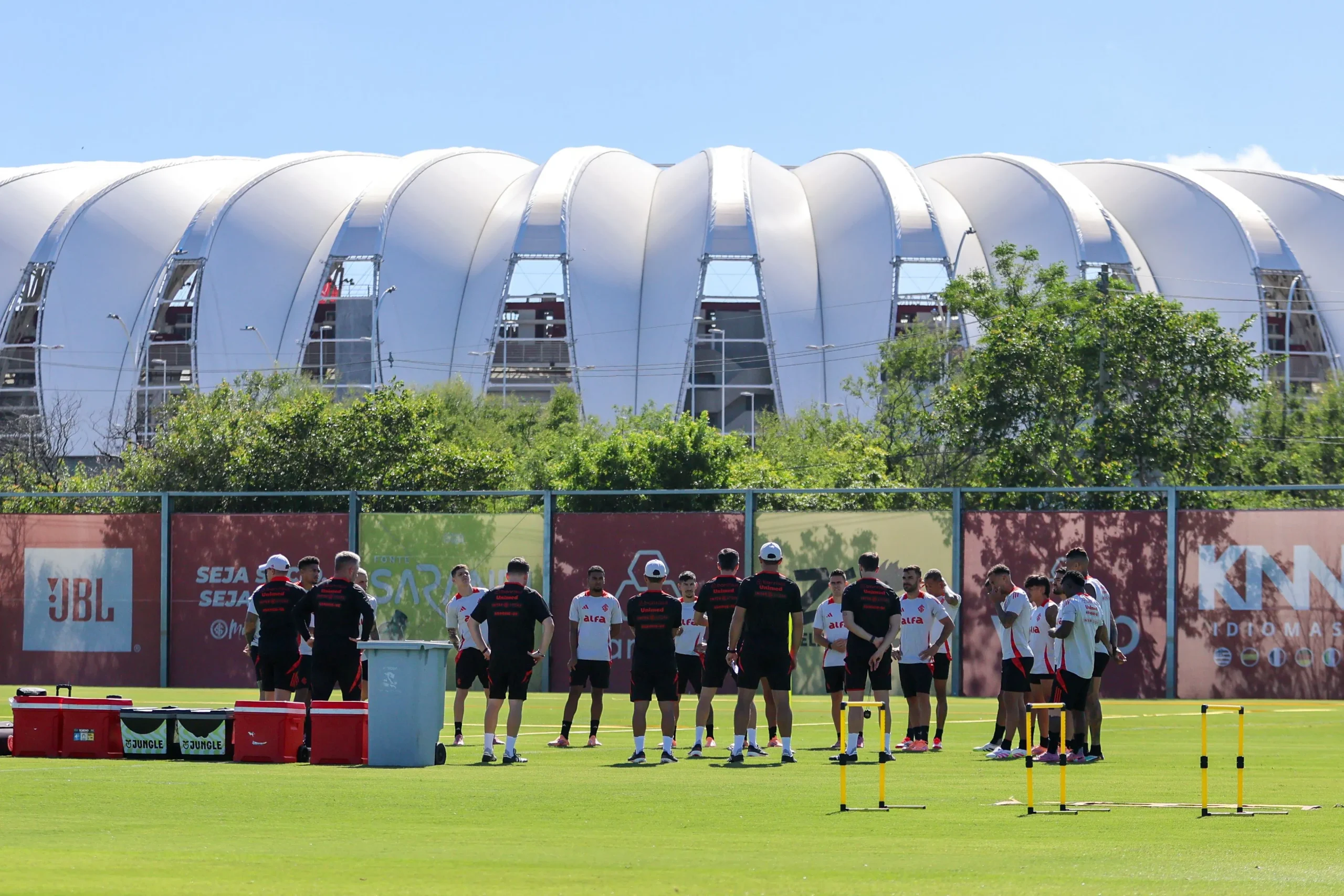 O treinador Paulo Pezzolano, junto da sua comissão técnica, começou a manhã orientando exercícios de força na academia. Depois, no gramado, deu sequência com atividades de troca de passes, um treino de posse de bola, completando com corridas no campo, exigindo muito de cada atleta.