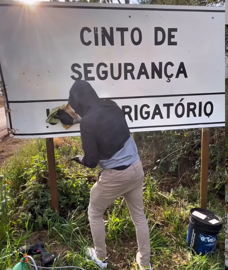 Munido apenas de um pincel, borrifador e pano de microfibra, o gaúcho Iago Custódio, de 28 anos, natural de Três Palmeiras (RS), virou fenômeno nas redes sociais ao compartilhar vídeos em que realiza a limpeza voluntária de placas de sinalização em rodovias. Em menos de um mês, os registros ultrapassaram 10 milhões de visualizações.