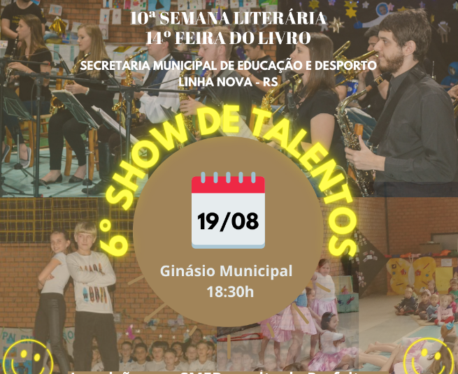 Linha Nova – Estão abertas as inscrições para os interessados em participar do 6º Show de Talentos, organizado pela Secretaria Municipal de Educação e Desporto, em parceria com a Administração Municipal. O evento faz parte da 10ª Semana Literária e 14ª Feira do Livro.