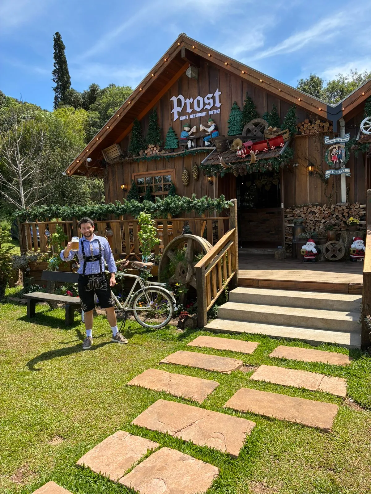 O espaço ocupa um antigo moinho e serraria — que também foi estrebaria — à beira da ERS-373. O projeto combina elementos rústicos, referências à imigração alemã e um cardápio bilíngue (português e Hunsrückisch), reforçando compromisso com preservação cultural e identidade. Nas palavras de quem visita, é uma “Oktoberfest o ano inteiro”, com alma de colônia e sabor de casa de vó. Para Maico, o lugar tem tese: “o Prost é um manifesto… um grito de que tudo pode ser transformado com pouco. A cidade tem cultura viva! Precisa ser contada.”