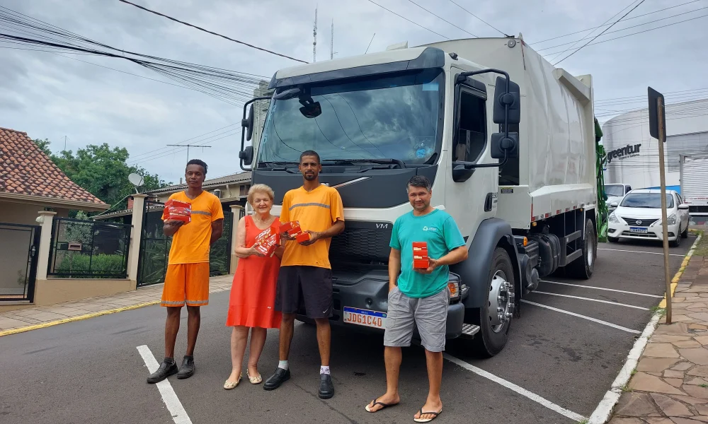 Na manhã de terça-feira, 23, os funcionários da empresa que realiza a coleta de lixo em Ivoti foram surpreendidos com a entrega de caixas de bombom pela ex-prefeita do município, Maria de Lourdes Bauermann. Ela relata que realiza as entregas do mimo há cerca de 20 anos e um dos colaboradores, que recebeu os bombons nesta manhã, relata que já recebe a sua caixa há 10 anos.