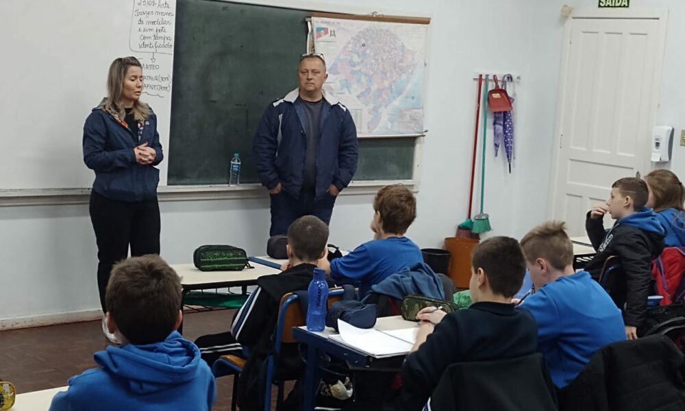 Picada Café – Dentro do projeto Sustentabilidade, desenvolvido pela professora Angélica Samanta de Christo na Escola Municipal 25 de Julho, o secretário Neco Linck (Agricultura e Meio Ambiente) e a bióloga Maricia Isabel Luft palestraram aos alunos na semana passada. Na oportunidade ambos falaram para os alunos do 5º ano sobre as ações na área do Meio Ambiente em Picada Café. O objetivo é estimular os estudantes a prática diária de cuidados que precisam ser tomados com foco na preservação. A escola, inclusive, realiza ações com coleta de material reciclável. Neste a comunidade contribui doando material que é separado e posteriormente comercializados com empresas que fazem a reutilização deste.