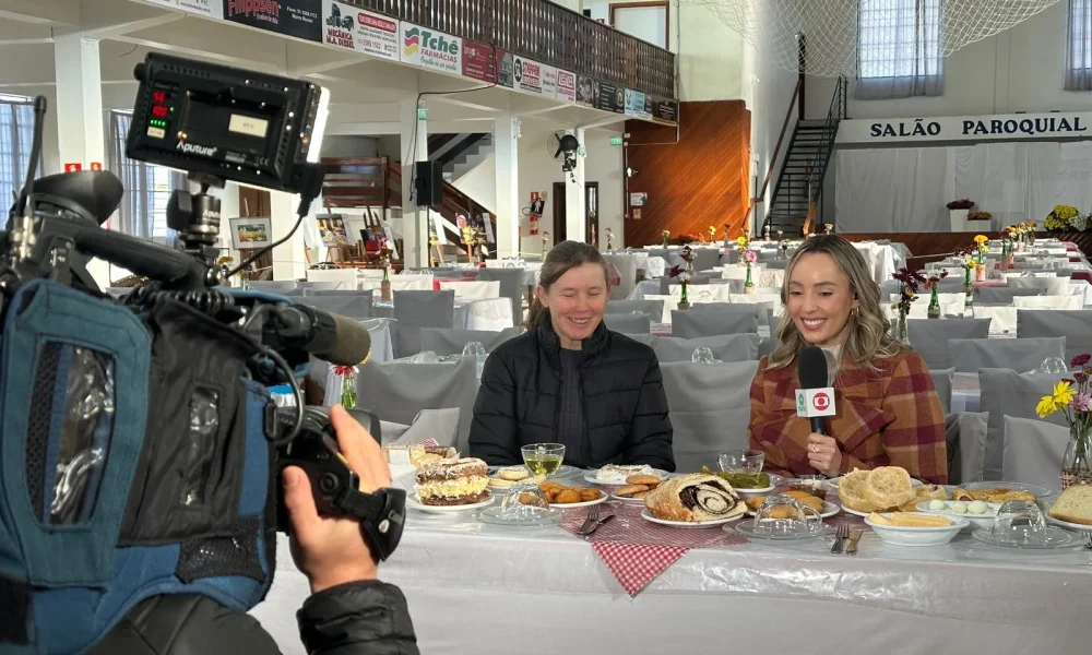Morro Reuter – A RBSTV esteve em Morro Reuter em dois momentos do 7º Café da Colônia a convite da assessoria de imprensa da prefeitura. No programa Baita Sábado, a jornalista Giulia Peracchi fez duas entradas ao vivo antes mesmo da abertura oficial do evento. No domingo, o jornalista Eduardo Paganella entrevistou visitantes que tomavam o café no salão Paroquial Imaculada Conceição, mostrou o desfile rural, o lavandário e o Caminho das Serpentes Encantadas.