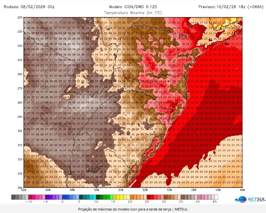 Segundo a MetSul Meteorologia, a combinação de temperaturas elevadas e umidade alta fará com que a sensação térmica fique acima do que indicam os termômetros, trazendo grande desconforto térmico em vários dias.