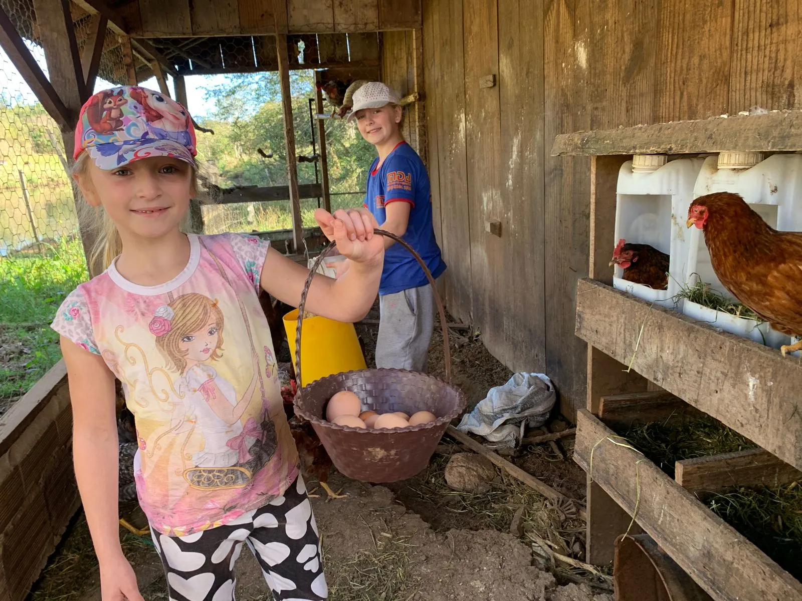 Recolher os ovos é “serviço” das pequenas Elena e Lívia