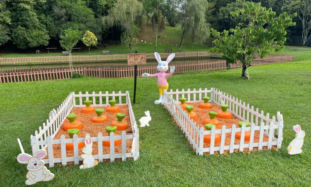 A decoração já está instalada no parque e pode ser visitada para fotos, garantindo registros instagramáveis e temáticos da Páscoa.A programação no dia 13 inicia às 14h, com música ao vivo de Samuka (voz e violão), além de brinquedos infláveis, pintura de rosto e bolhas de sabão gigantes para a diversão das crianças.