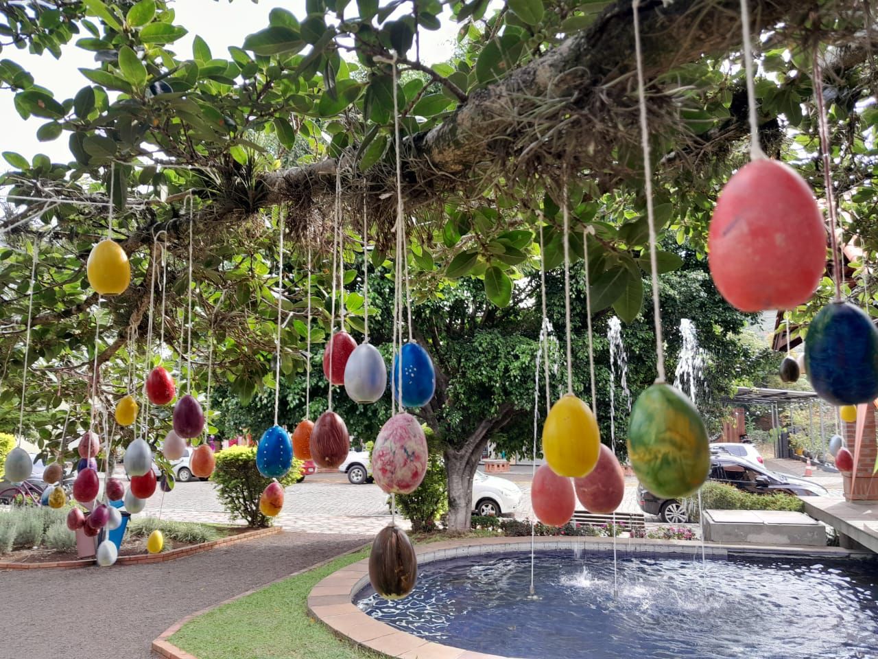Praça Central de Morro Reuter está com decoração de Páscoa
