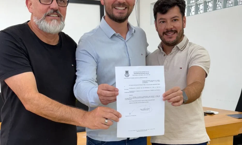 Estância Velha- O prefeito Diego Francisco, oficializou na tarde de segunda-feira, 26 de janeiro, a nomeação de Renan Mallmann, 34 anos, como novo titular da Secretaria de Gestão, Governança e Finanças (SGGF). “O Renan me acompanha há muitos anos, é competente, muito dedicado, e tenho certeza que fará um grande trabalho à frente da secretaria”, afirmou o prefeito. Formado em Contabilidade e Gestão Financeira, com pós-graduação em Administração de Empresas, Renan Mallmann integra a Administração Municipal desde 2021, atuando como diretor de Projetos Estratégicos e Captação de Recursos, vinculado ao Gabinete do Prefeito. Durante esse período, teve papel essencial na obtenção de mais de R$ 70 milhões em recursos para obras e melhorias estruturais na cidade.
