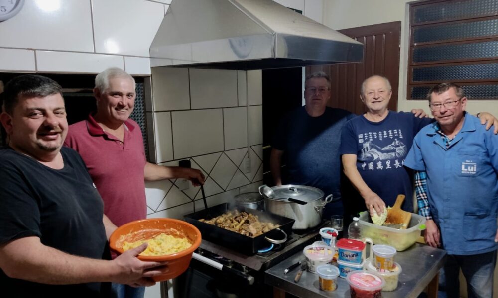 Geral Preparativos para o Kerb do Bar do Lui 28/07/2022 - 17h42min Imagem: Volmir Müller Dois Irmãos – Reunião para preparar o Kerb do Bar do Lui, que será em setembro e não era realizado desde 2019. Avaliando o cardápio estão Daniel, Jandir, Joelson, Marcos e Lui Klein Tópicos Relacionados: