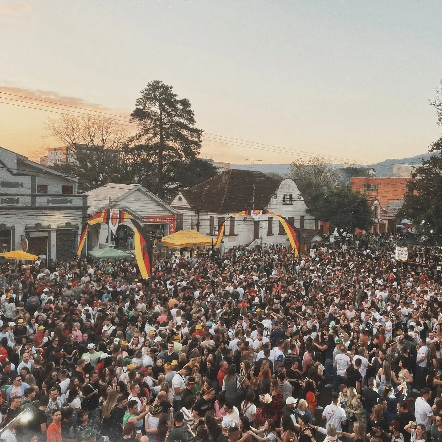 Às 14h, a Banda Knecus sobe ao palco no Largo, preparando o clima para um dos momentos mais esperados do dia: o Desfile Temático de Kerb, que acontece às 15h30 na Praça do Imigrante, reunindo grupos, alegorias e o tradicional Bierwagen.