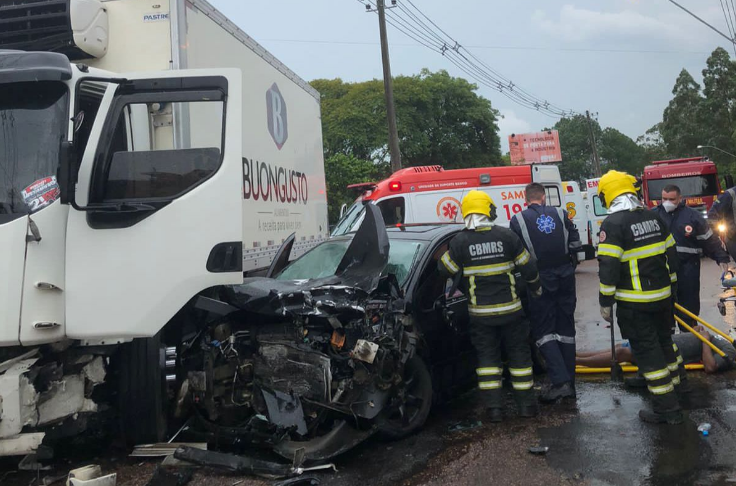 Segundo as equipes de socorro, chovia muito no momento do acidente, e os feridos, dois homens e duas mulheres, foram encaminhados para atendimento no Hospital Dom João Becker.