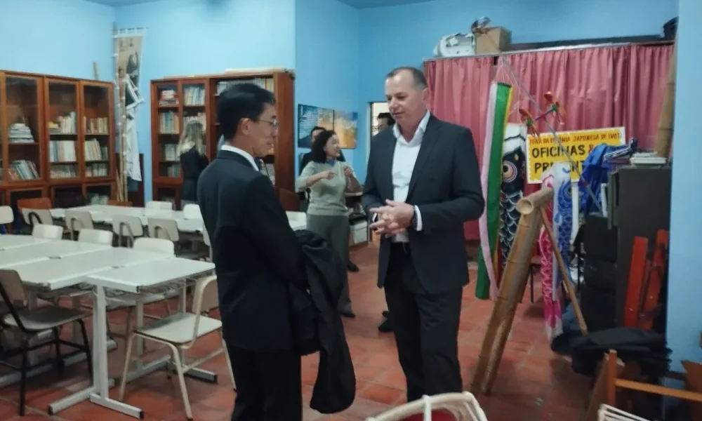 Ivoti – O ministro e Chefe de Missão adjunto da Embaixada do japão no Brasil, com sede em Brasília, Tomoaki Ishigakji, visitou na tarde desta sexta-feira, dia 9, a Colônia Japonesa de Ivoti. Ele estava acompanhado doo cônsul Shimizu Kazuoyoshi, entre outros assessores. Ele se disse bastante emocionado e elogiou a recepção do presidente da Associação Cultural e Esportiva Nipo-brasileira de Ivoti (Acenb), Paulo Tanaka e do prefeito Valdir Ludwig e assessores. O prefeito destacou a importância da visita e lembrou os 130 anos de amizade Brasil-Japão.
